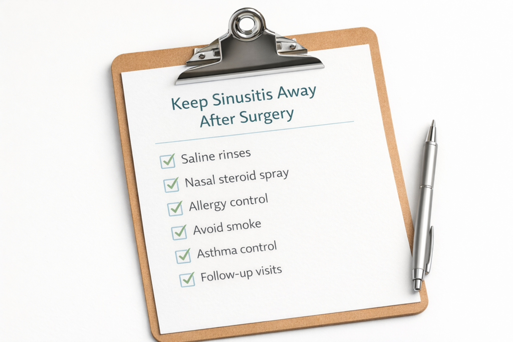 - Steroid drops/irrigations in selected cases (especially polyps, guided by your ENT)